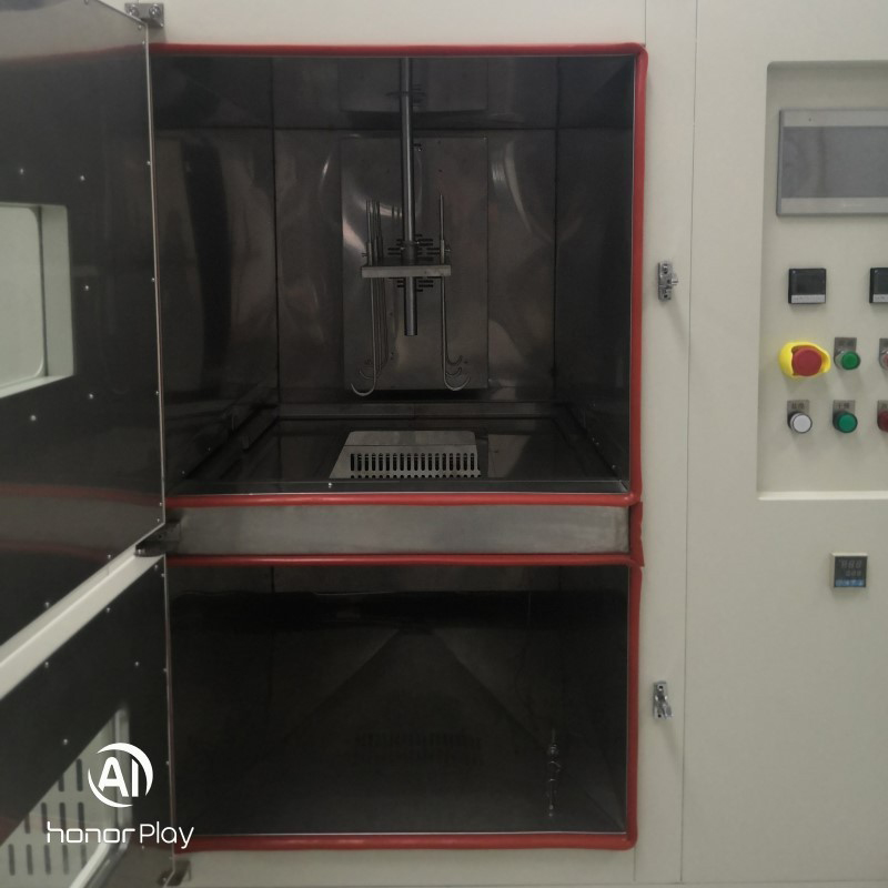 2.2.上部チャンバーと下部チャンバーの間で試験片を交互に試験する場合、乾燥オーブンの上部に取り付けられた電動プッシュロッドが試験片を昇降させます。 316L ステンレス鋼で製造された標本ラックには 6 つのサンプルが収納できます。乾燥オーブンと塩浸漬チャンバーの間の電気的に操作される仕切りドアは、実験シーケンスに従って自動的に開閉し、一時的な操作のための手動オーバーライド ボタンが追加されています。