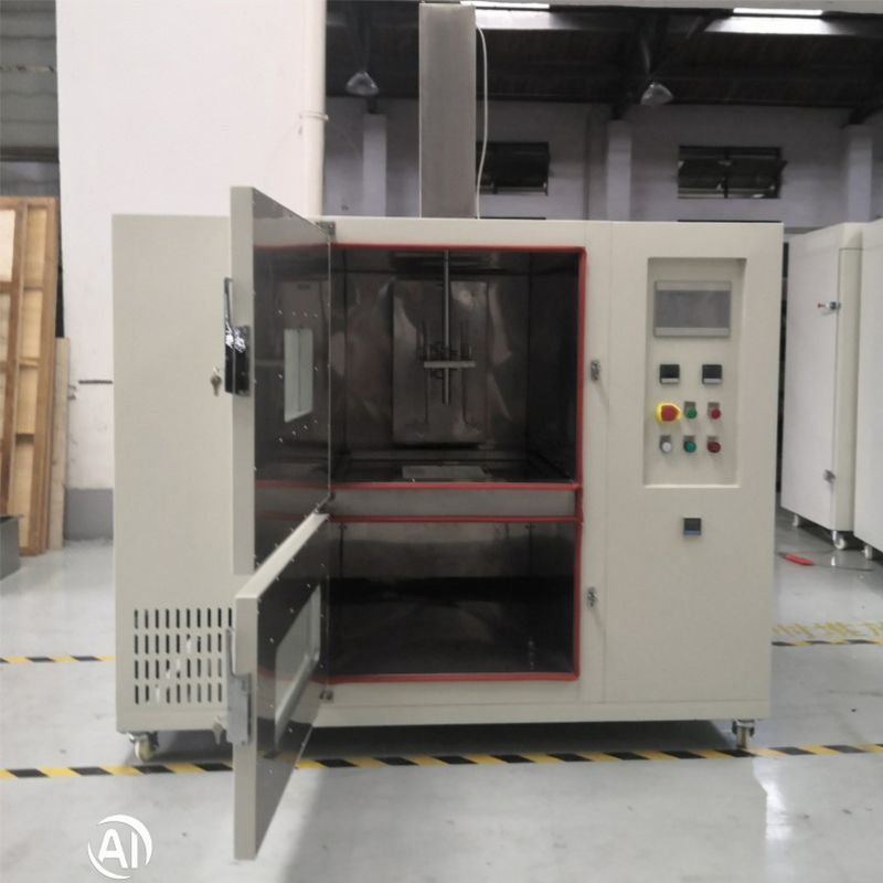 2.6.試験要件に従って、試験片は乾燥オーブンで定期的に乾燥され、塩浸漬チャンバーに浸漬されます。各サイクルの前に、乾燥オーブンと塩浸漬チャンバーの動作温度が個別に設定され、それぞれの温度制御システムが作動します。チャンバーが必要な動作温度に達したら、乾燥時間 (例: 50 分) と浸漬時間 (例: 20 分) を設定し、それぞれの温度制御システムを起動して作動させます。チャンバーが必要な動作温度に達したら、乾燥時間 (例: 50 分) と浸漬時間 (例: 20 分)、およびサイクル数を設定します。スタートボタンを押します(通常の状態では、サンプルラックは乾燥チャンバー内にあります)。その後、試験片は、プログラムされたスケジュールに従って定期的な乾燥と浸漬サイクルを受けます。乾燥期間 (50 分など) が完了すると、乾燥チャンバーと浸漬チャンバーの間の仕切りドアが開きます。次に、チャンバーの上部に配置された電気プッシュロッドが試験片を浸漬チャンバー内に下げます。同時に、プッシュロッド上部のカバーが試料通路を密閉し、上部チャンバーと下部チャンバーを隔離します。浸漬期間 (たとえば 20 分) が終了すると、電動プッシュ ロッドが試料を乾燥チャンバーに持ち上げます。中間の仕切りドアが自動的に閉まり、2 つの部屋が再び隔離されます。このシーケンスは 1 サイクルを構成し、テストが完了するまで事前に設定されたサイクル数に従って繰り返されます。さらに、各試験片を完全に浸すか回収する時間は 2 分を超えてはなりません。さらに、特別な要件に対応するために、この装置には中間仕切りドアの開閉ボタンが個別に装備されています。試料ホルダーには瞬間昇降ボタンも付いており、操作上の必要に応じて試料を上げたり下げたりすることができます。